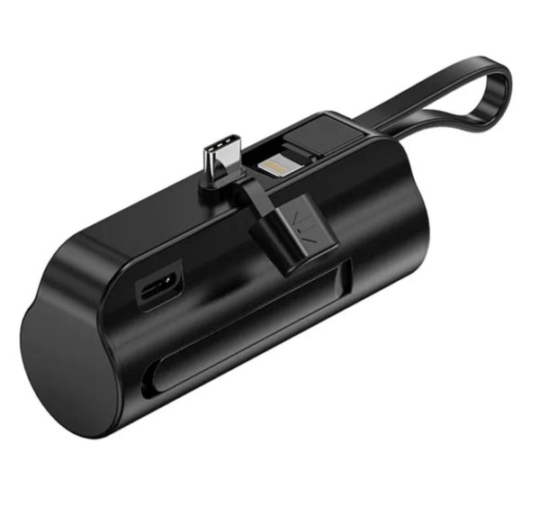 Batterie externe portable 5000 mAh avec deux ports, avec cordon tour de cou et support de téléphone